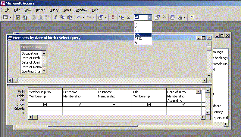 You may also like to think whether a Yes/No box really is the most appropriate data type to use. The user has to enter either 'Yes' or 'No' for the field. A 'Yes' (or tick in a check box) on a form for 'Smoker' may make sense, but seems (to me, at least) to be decidedly odd for the 'Sex' or 'member/class' fields for the Chelmer leisure Scenario (though it does save space). You may like to experiment with using a Look-Up Wizard for the data type here, and setting just the two values 'Male' and 'Female' or 'Member' and 'Class' for the list box that the Wizard will create. 'M' or 'F' etc would save space.