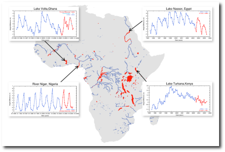 The River and Lake system has been put live over Africa, delivering accurate height data over major lakes and rivers on the African continent, within a few days of data collection by the Envisat RA-2 Radar Altimeter. The EAPRS system permits access to accurate water heights without the need for ground measurements.