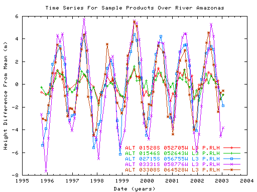 As an example, time series for 5 RLH sample products from different parts of the Amazonas River are plotted together below.
