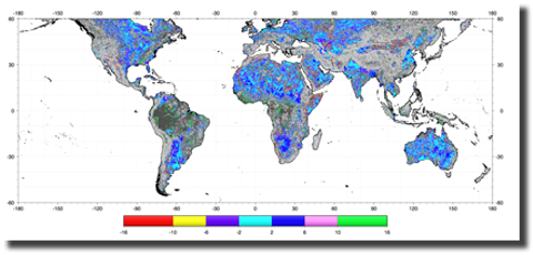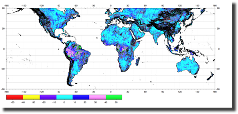 Over much of the Earth's surface the two datasets show very good agreement within the SRTM's stated accuracy of ±16m, in these areas the SRTM values will be warped to the Altimeter values and the precision will be increased from metres to decimetres. Over areas where the SRTM height values were biased due to the foliage the Altimeter values will be used to warp the SRTM values so the tree heights are removed and the height of the ground remains.