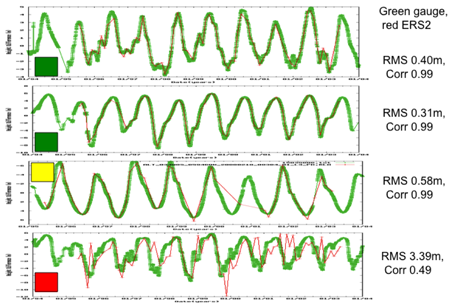 A new aspect of this work is the automated grading system, which allows the quality of derived timeseries to be automatically assessed. Examples for the Amazon basin are shown below for TOPEX, Jason1, ERS2 and EnviSat. Jason2 will be added as soon as a sufficiently long timeseries has accrued.