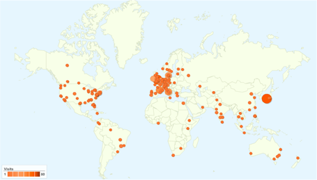 The global nature of this collaborative work is well illustrated using a snapshot from Google Analytics (below) showing the distribution of users at July 2010.